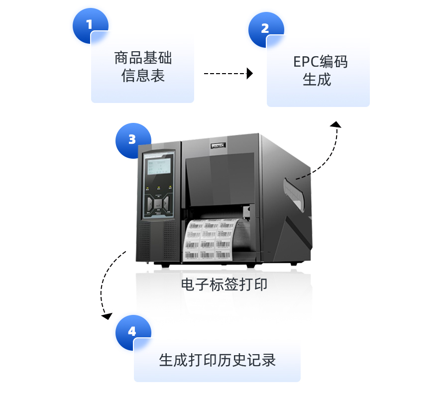 通過(guò)自研標(biāo)簽打印程序,系統(tǒng)直接輸出打印和寫數(shù)據(jù)指令到電子標(biāo)簽,快速批量有效的管理電子唯一碼,實(shí)現(xiàn)標(biāo)簽批量初始化??芍苯油ㄟ^(guò)系統(tǒng)設(shè)置打印溫度,打印速度,打印走紙,RFID位置校準(zhǔn)等功能。