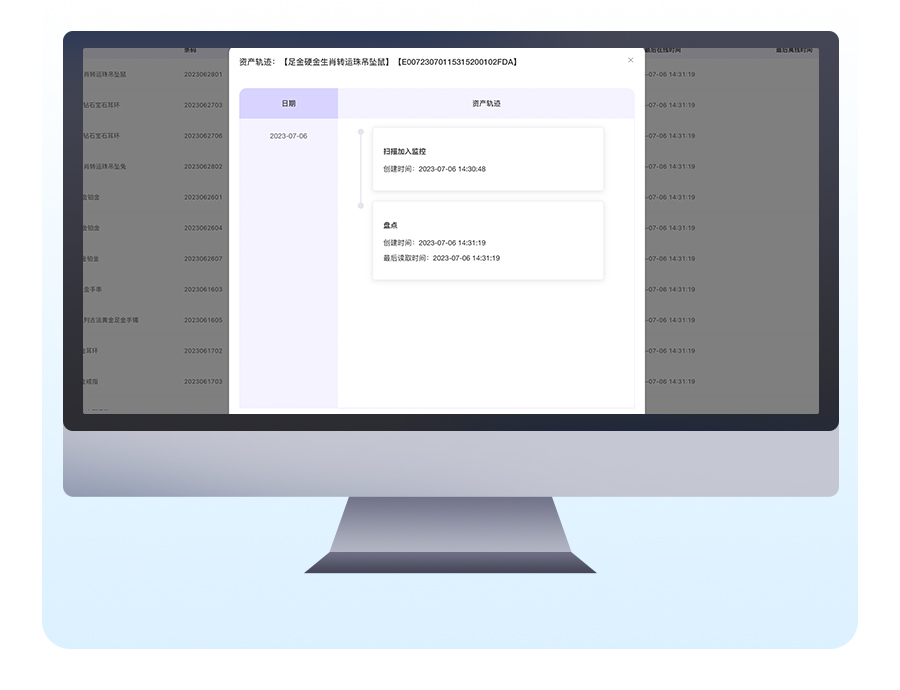 可以追蹤到貨品的資產(chǎn)軌跡查看資產(chǎn)掃描時(shí)間掃描地點(diǎn)。